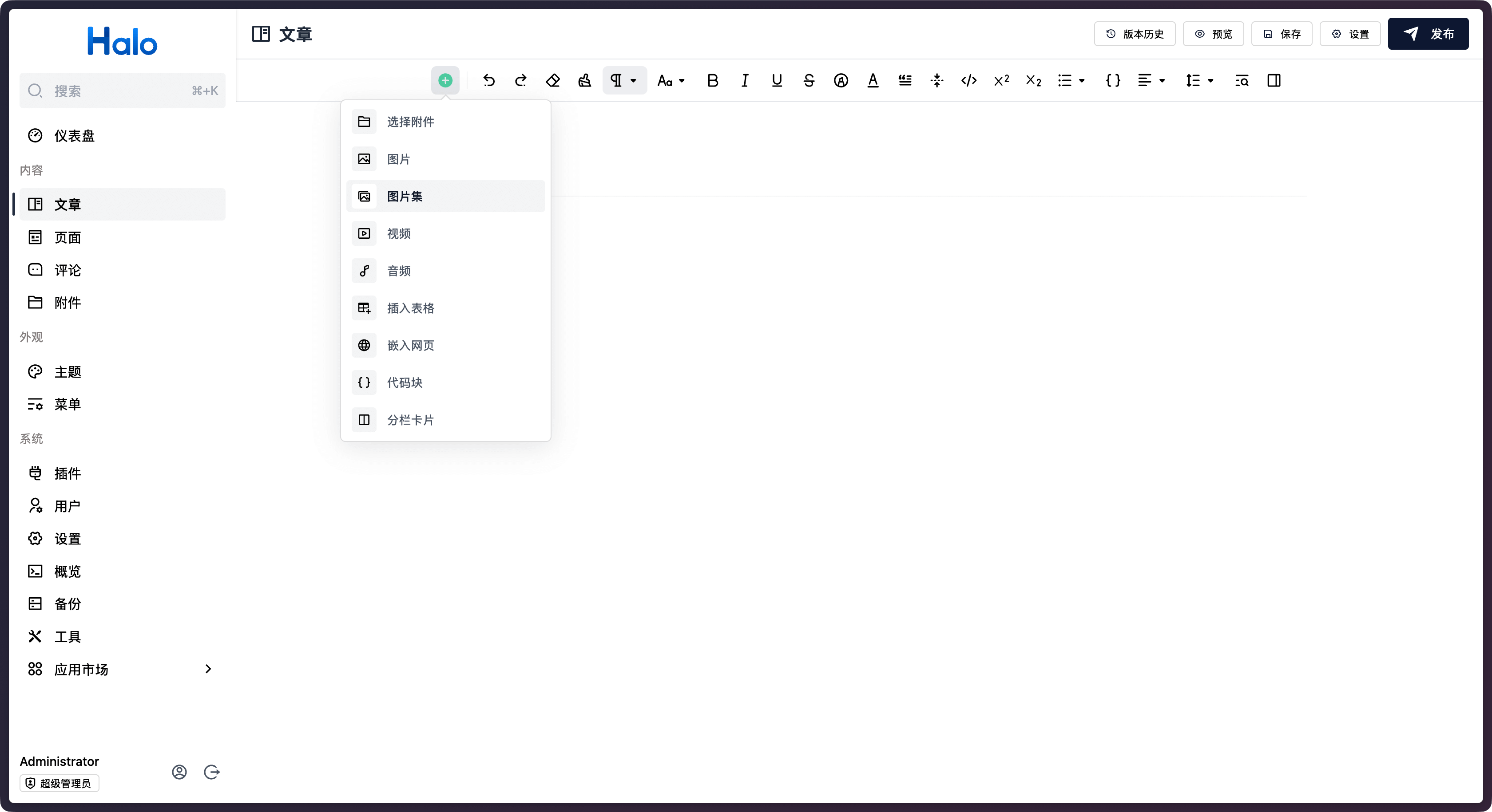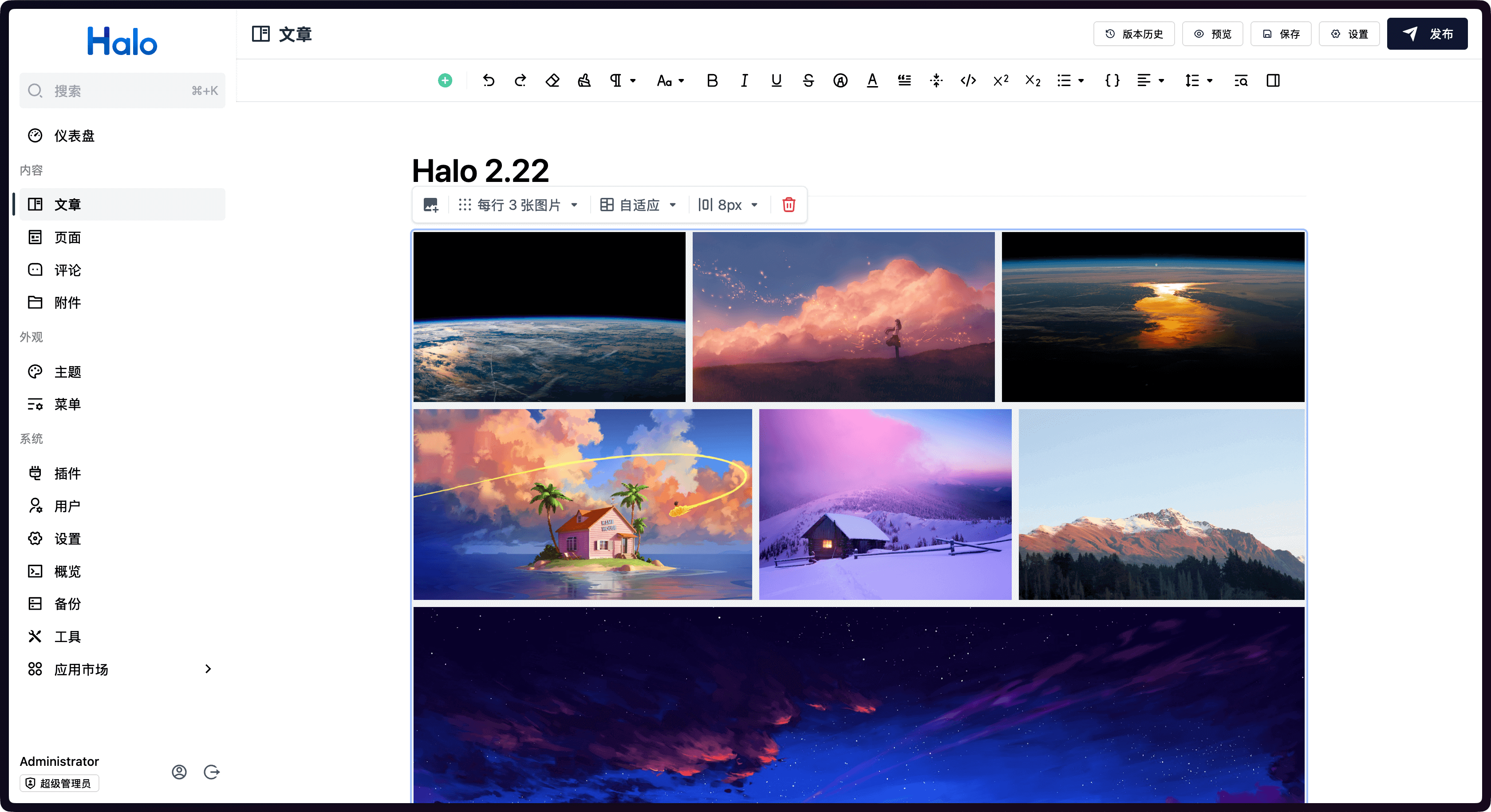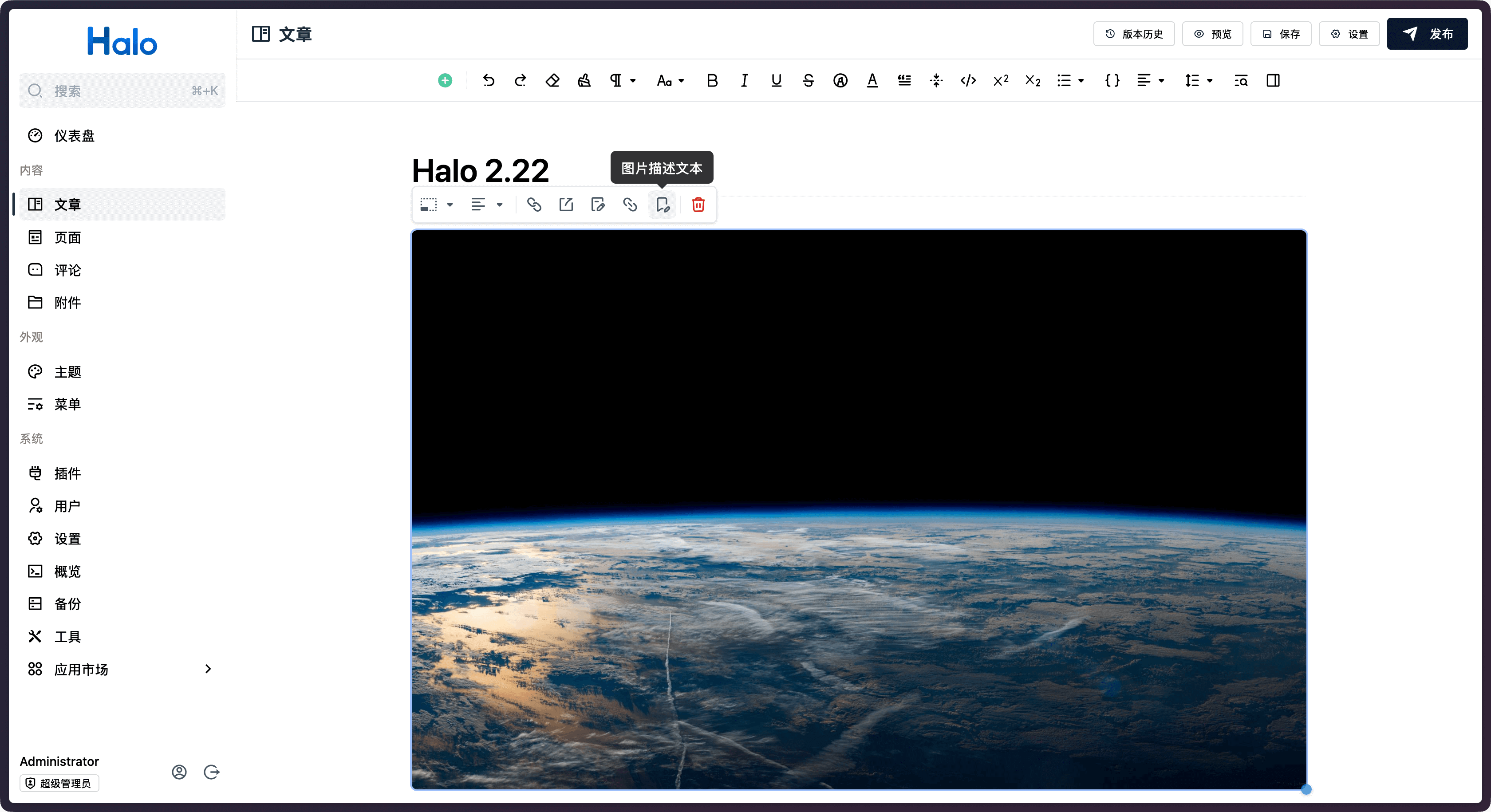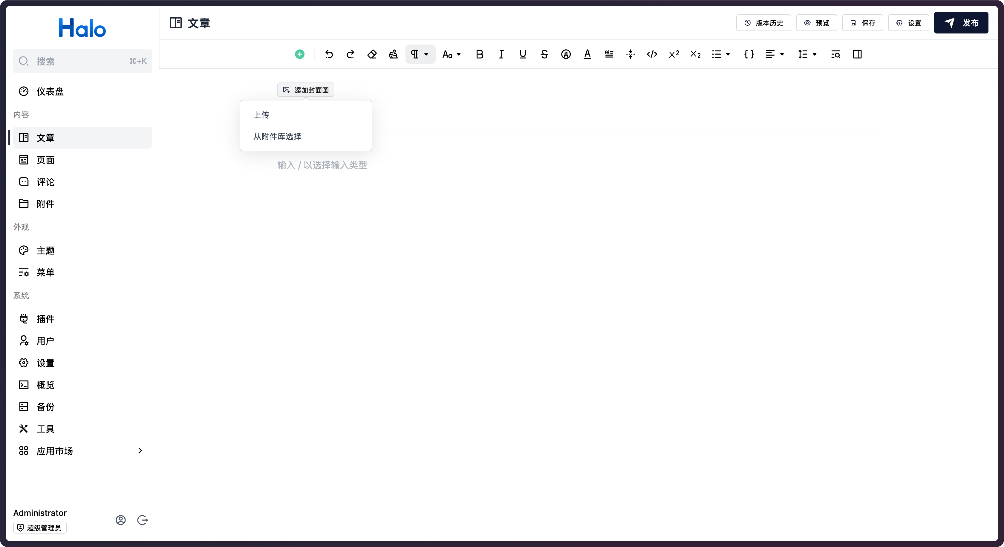 在 Halo 2.22 中,我们在文章编辑器中添加了设置封面的功能,进一步简化了文章编辑流程。