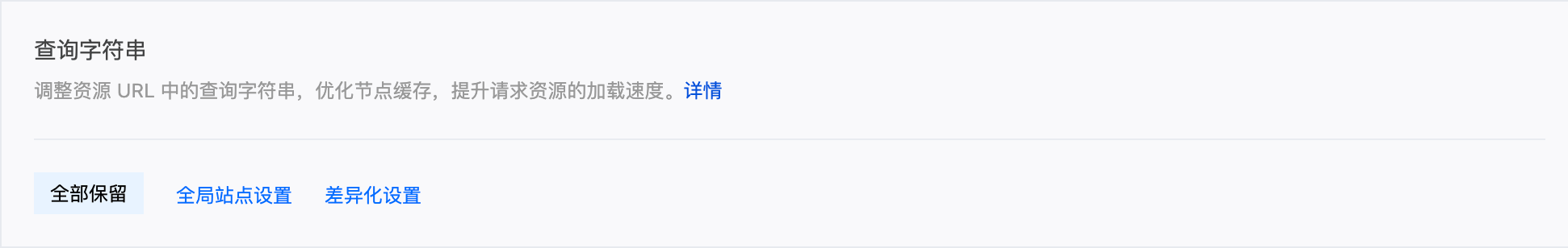 设置为全部保留。Halo 的部分请求(如附件下载、API 请求)依赖 URL 中的查询参数,全部保留可以避免因参数被丢弃导致请求异常。