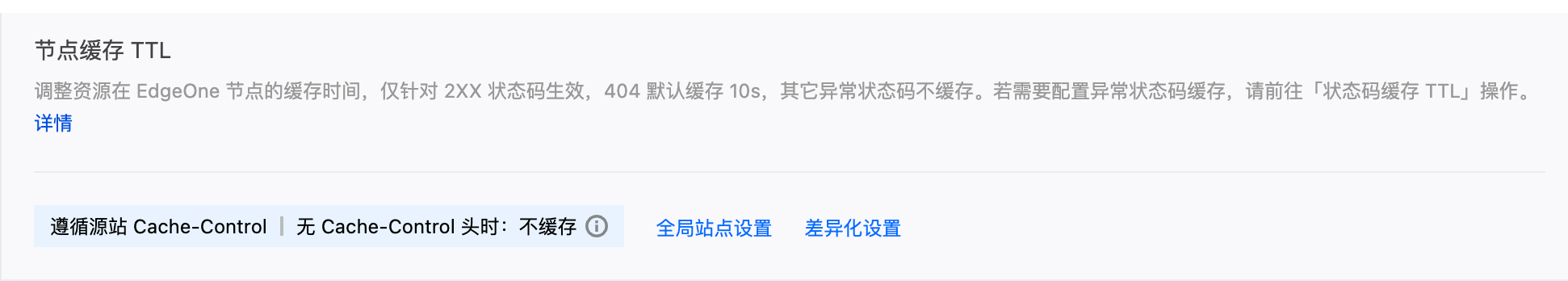 设置为遵循源站 Cache-Control。Halo 会为静态资源设置合理的缓存头,EdgeOne 遵循这些设置可以避免缓存策略冲突。