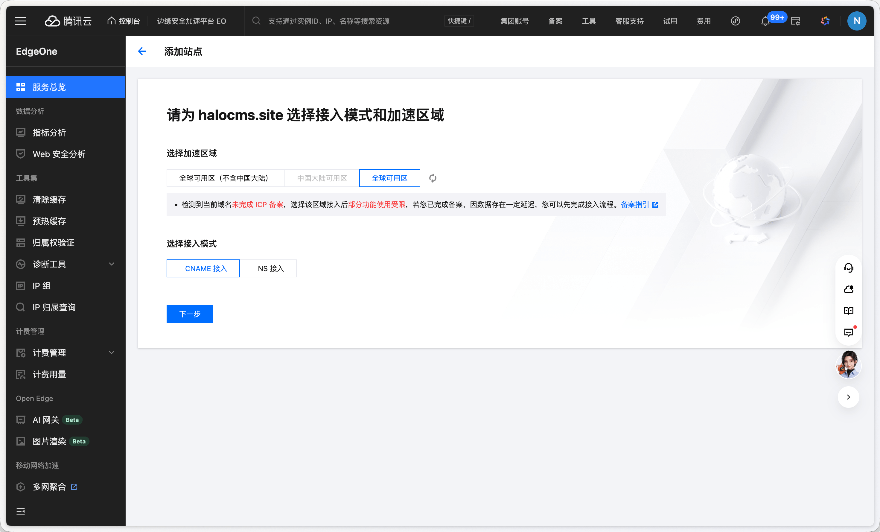 | 全球可用区 | 全球节点加速,需域名已备案 |