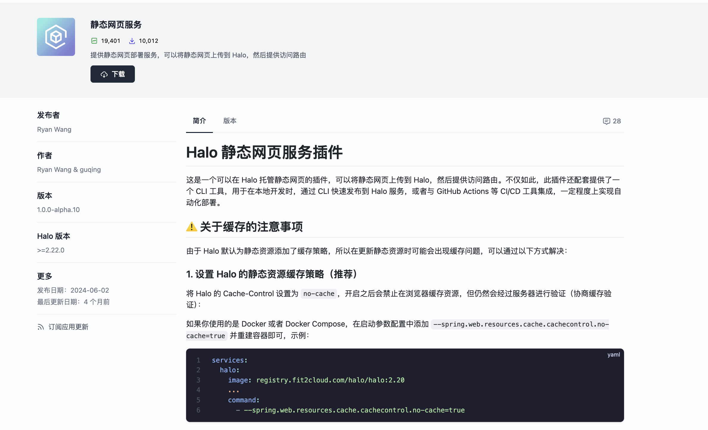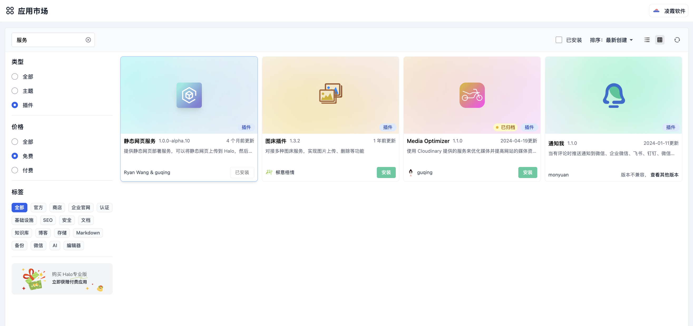 Halo 应用市场里有一个免费插件叫 静态网页服务(已被下载 19000+ 次),它做的事情非常简单:让你把 HTML 文件上传到 Halo,然后通过一个网址访问。没有 Git,没有命令行,没有全英文界面。