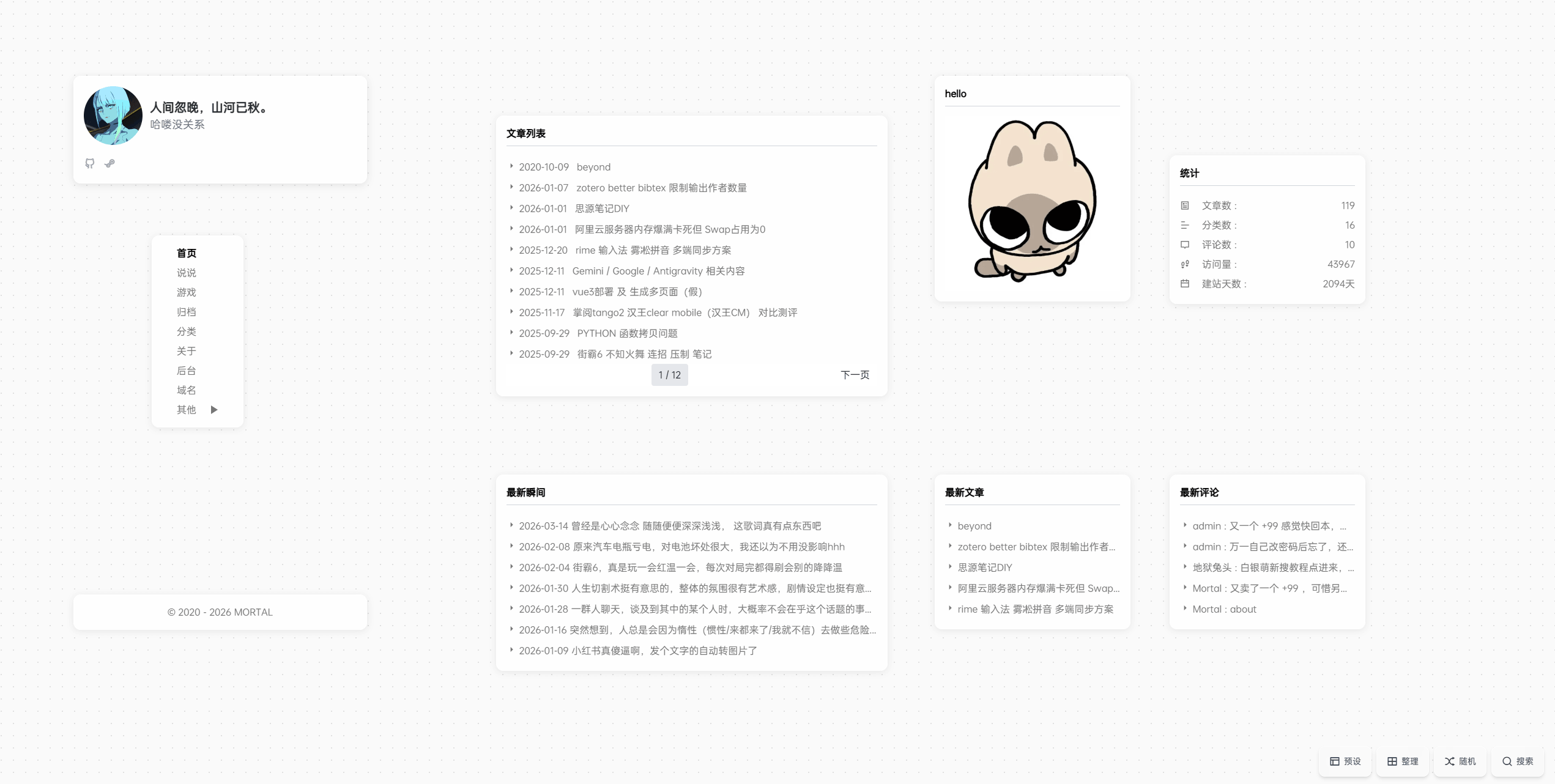 - 桌面布局:针对桌面视图开启/关闭个人简介、文章列表、最新瞬间、统计等模块。